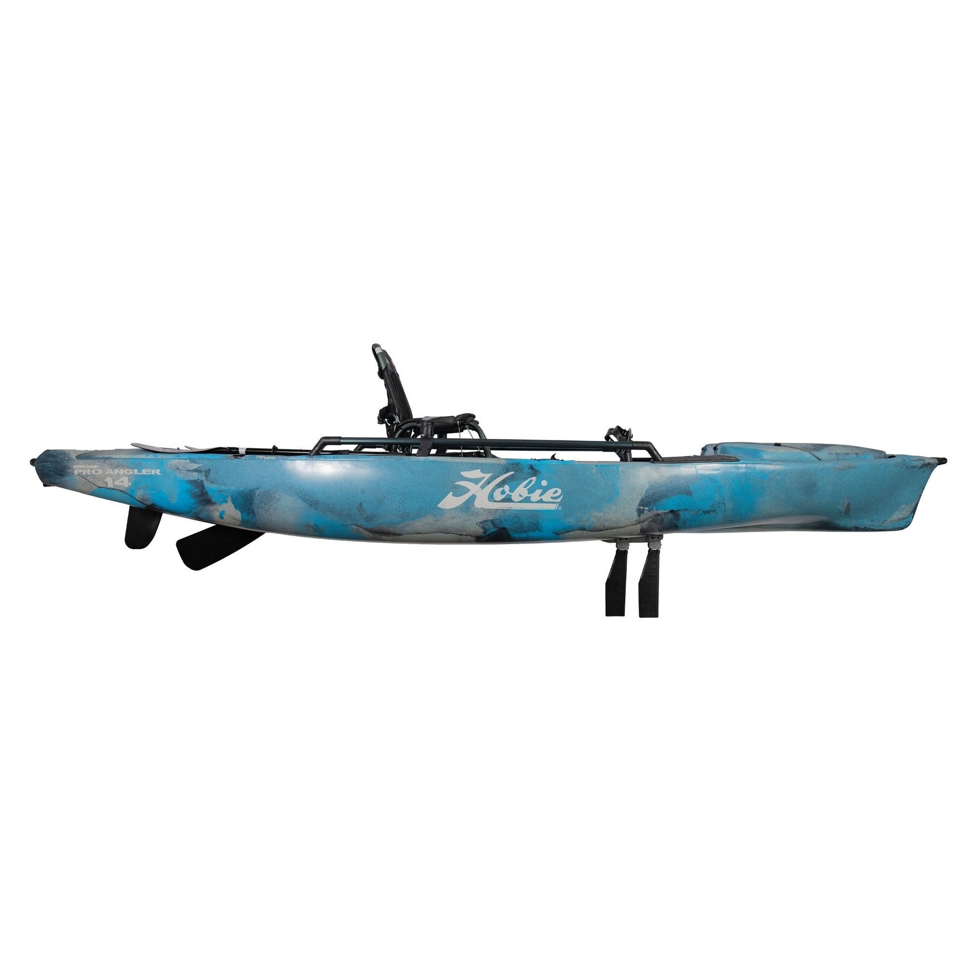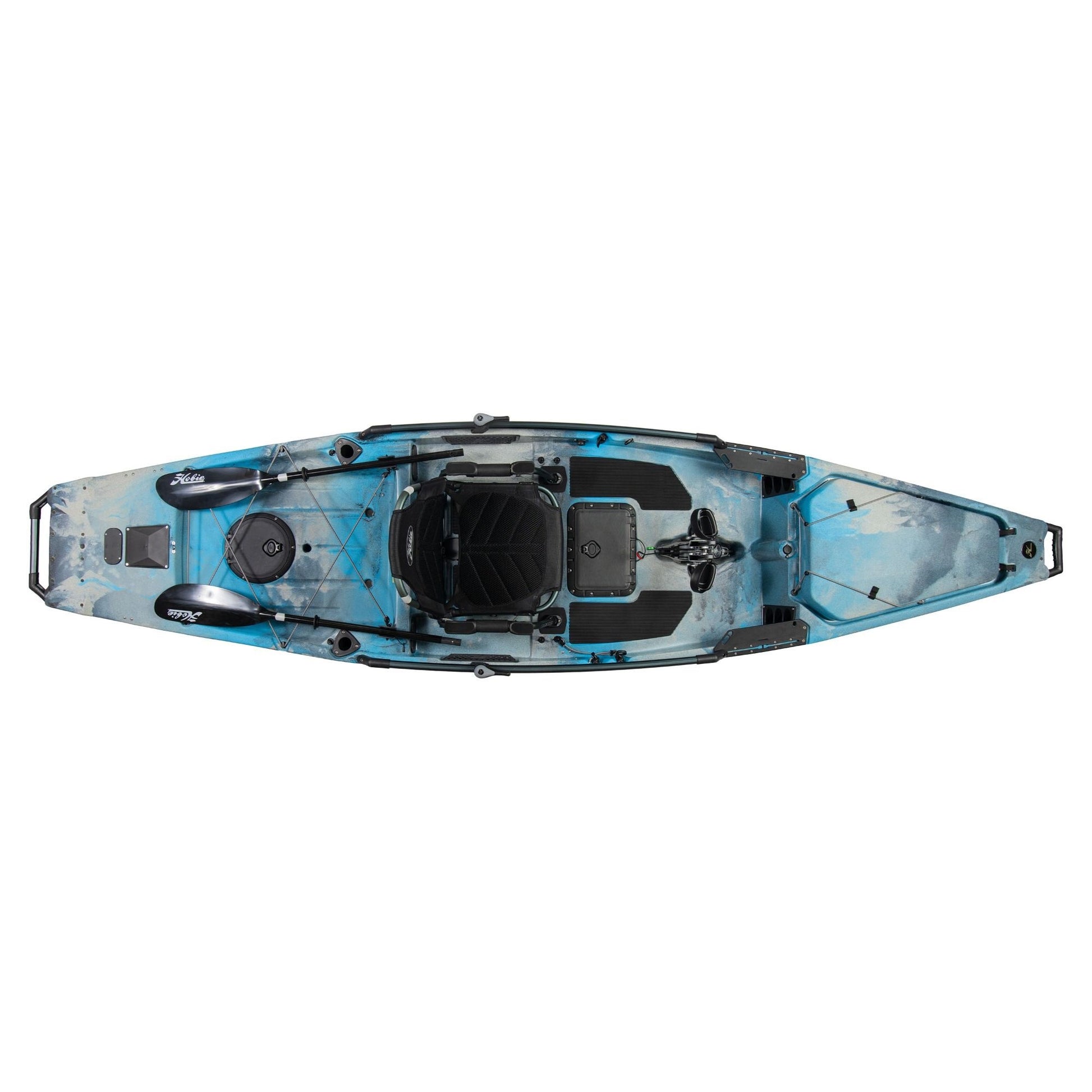 The Hobie Mirage Pro Angler 14 Sit-On-Top Pedal Kayak dominates the water as the Ultimate Fishing Machine. For discerning anglers who demand it all - room, stability, performance, stealth, and comfort– the PA 14 stands alone. There’s a non-skid deck for standing—a huge advantage for sight kayak fishing—and veritable acres of H-Rail for mounting rod holders and electronics. All this on a spacious 14-foot platform, with no need for a gas tank. Hobie Kayak unique MirageDrive 180 with new Kick-Up Turbo Fins provides efficient, worry-free, quiet propulsion.