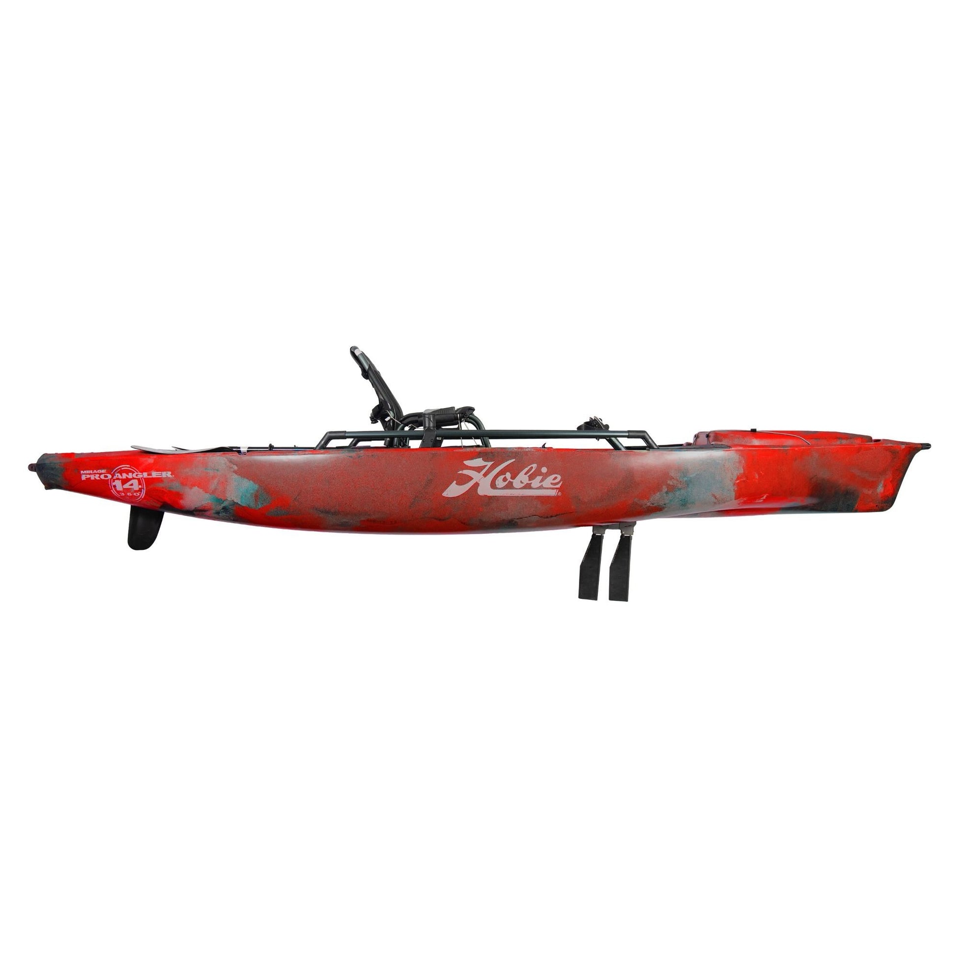 The Hobie Mirage Pro Angler 14 Kayaks with 360XR Drive Technology is crafted to meet the exacting demands of elite anglers, these sit on top kayaks offer unparalleled control, power, stability, and performance, elevating your fishing experience to new heights. Featuring a wide, rock-solid standing platform adorned with noise-reducing EVA traction pads, the Mirage Pro Angler 14 ensures stealth and comfort on the water. Equipped with Kick-Up Turbo Fins that automatically retract upon impact, you can explore any waterway with confidence, knowing you're protected against obstacles.