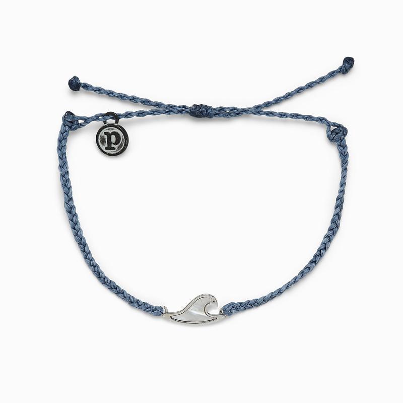 Make your surf style look super chic with our Mother of Pearl Wave Bracelet! Available in four string colors and two metal finishes, this bitty braid design features a classic Wave charm filled with a Mother of Pearl stone. Each stone is 100% genuine, so no two look alike!