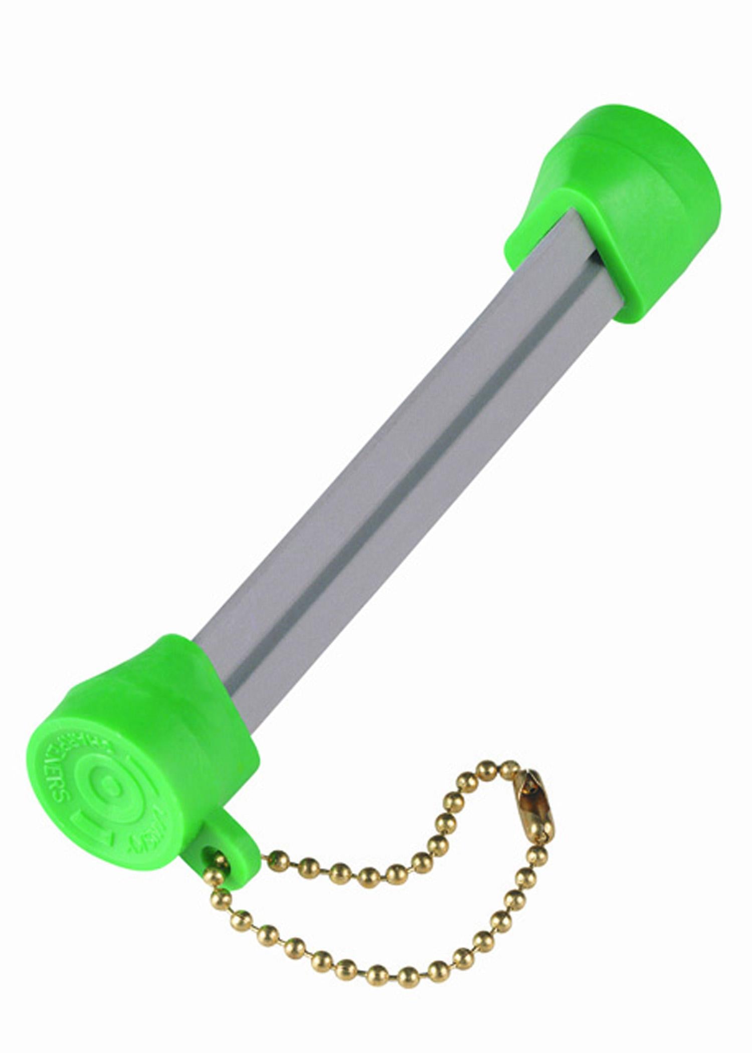 Sharpens straight-edge and serrated blades plus fish hooks and other pointed objects. The edge’s of the sharpener makes sharpening the serrations on multiple serrated blades very easy. The flat surfaces are for sharpening regular blades, and the groove is for fish hooks and other pointed objects. It features non-slip thumb and finger rests and a keychain.