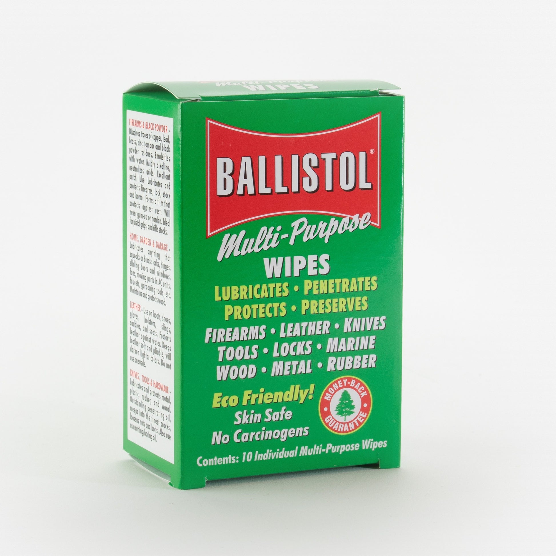 Multi-Purpose Lubricant Wipes Protect Guns (also dissolves traces of copper, lead, brass and black powder residues). Neutralizes Acids and Acidic Residues. Emulsifies with Water for Dilution, yet Holds its Properties. Protects Wood, Leather, Plastic and Rubber. Also can be used for Marine Lubricant.