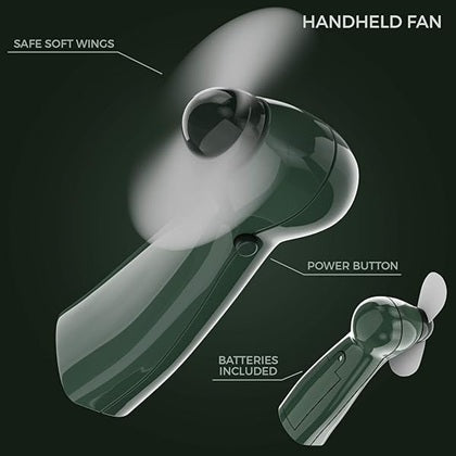 - Handheld fan: Cool off on hot summer days with the battery-operated handheld fan with safe soft wings (batteries included)..