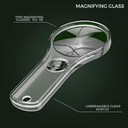 - Magnifying glass: Study insects closely with the pocket-sized magnifying glass..