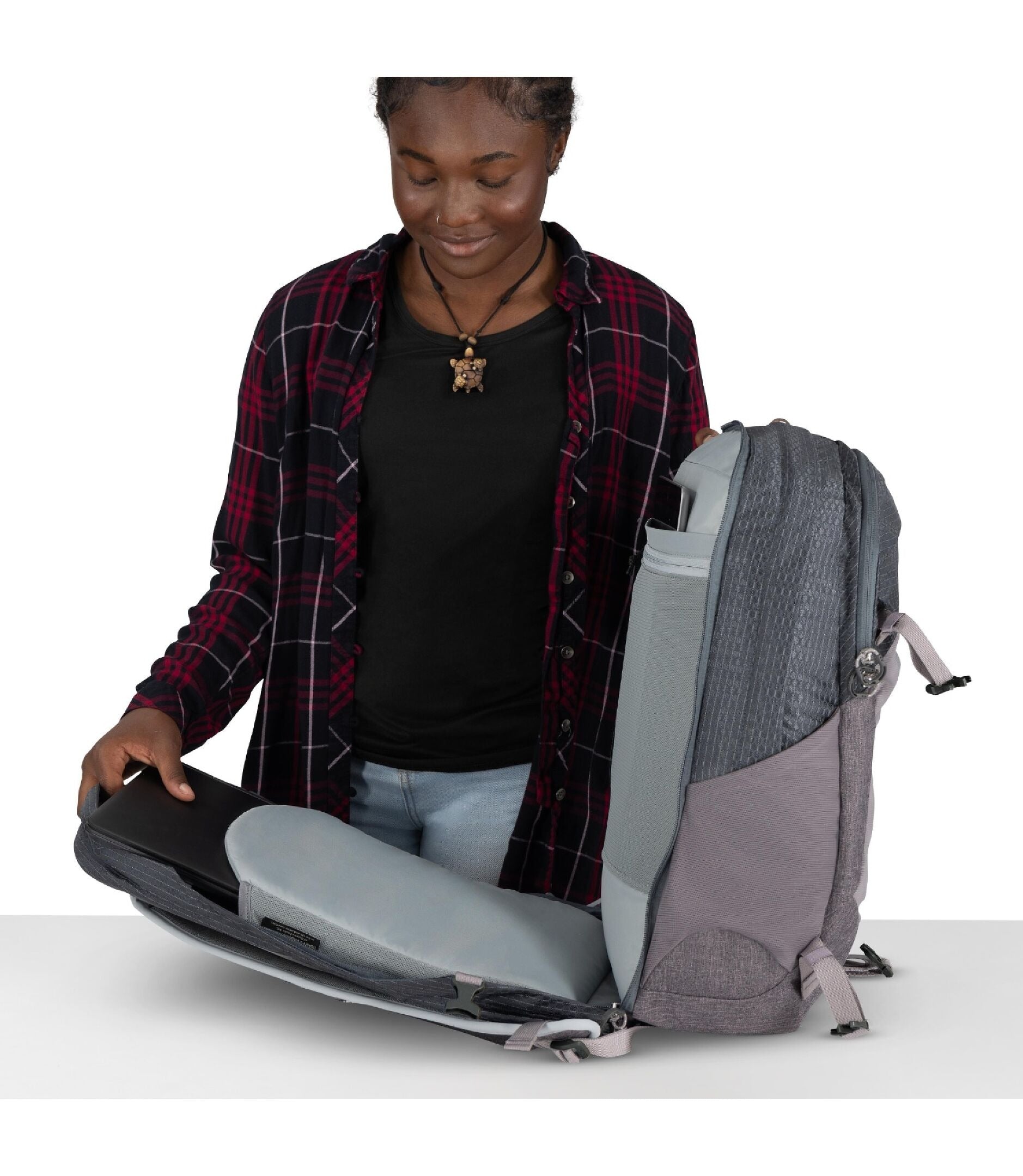 - Separate TSA-compatible, full-zip clamshell with padded laptop sleeve