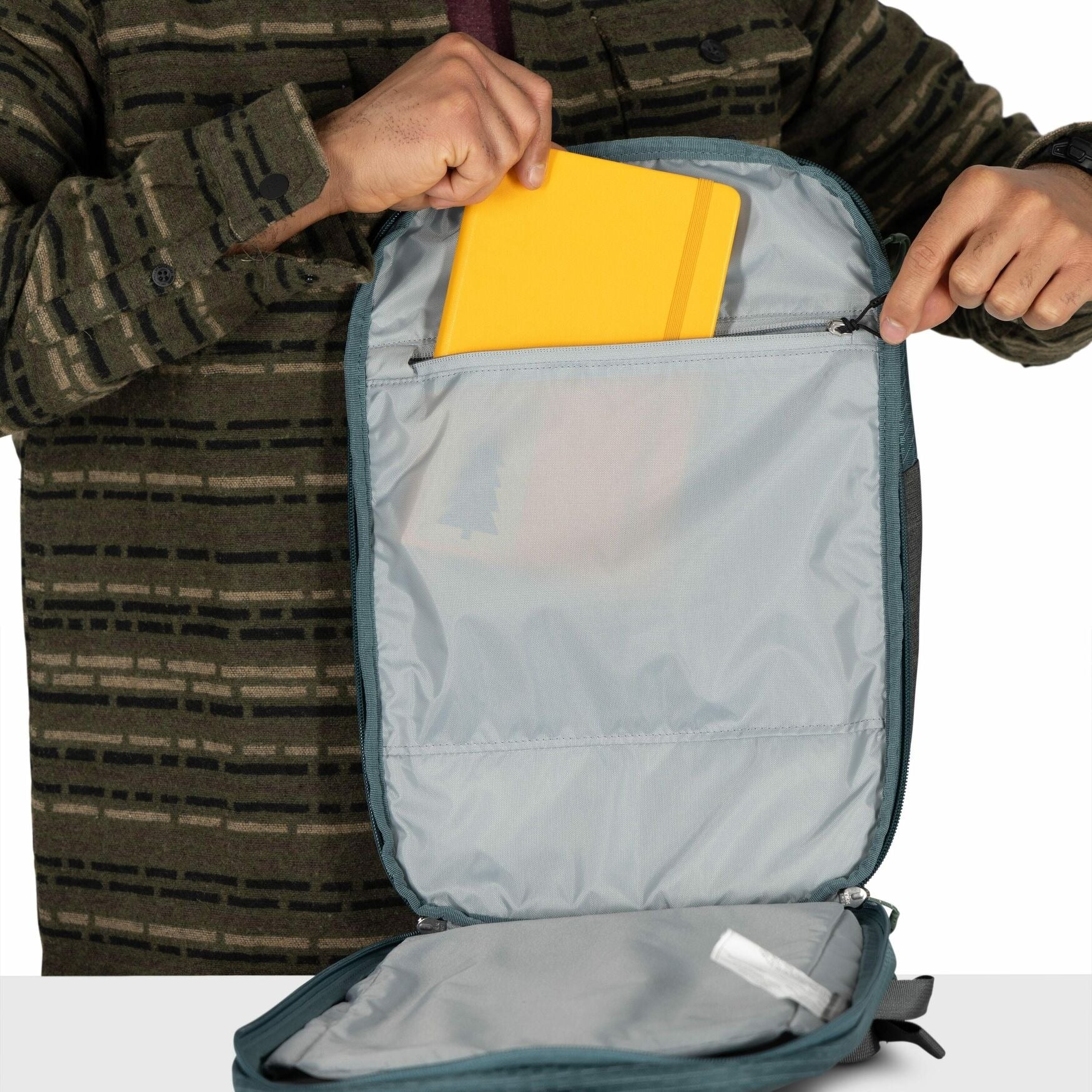 Everyday Needs: Compact and organized for your daily needs, with a 14” laptop sleeve, cell phone shoulder strap pocket and space for a 40-ounce water bottle.