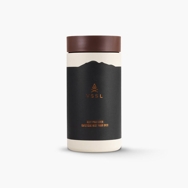 Making coffee outside just got a lot easier. The Nest Pour Over Set incorporates double-walled insulated stainless steel construction with a BPA Free food grade lid into a rugged, portable pour over coffee brewing system. Each component is designed to work together, intuitively, to deliver the simplest brewing experience on the go. Dual threads enable the 3-piece Kit to nest as on compact, transportable unit. The Nest Pour Over Set delivers a 10oz double-walled mug, splashproof lid, double walled pour-over coffee device, and a food grade stainless steel mesh filter. It’s an integrated, compact system that’s ideal for overlanding, adventure travel, or anywhere you want a great cup.
