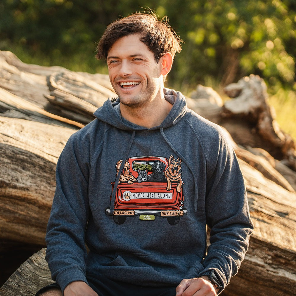 Hiking in groups is a common safety tactic in bear country. Why just choose to hike in groups for safety though? Adventuring is better when you share the experience with others and who better than our furry friends who always let you have the final say, while keeping a watchful eye? Regardless, never hike alone and show everyone who your best friends are on the trail with this graphic hoodie.