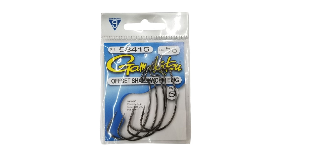 The Gamakatsu 5/0 Offset Shank Extra Wide Gap Worm Hook is the gold standard in high performance wide gap hook designs. This hook fishes a Senko to perfection. Use it to pitch a Brush Hog or Sweet Beaver to shoreline targets. It's great for Texas rigging or Carolina rigging a 10" worm. Gamakatsu's Offset Shank EWG Worm Hook is a soft plastic jerkbait angler’s dream hook!