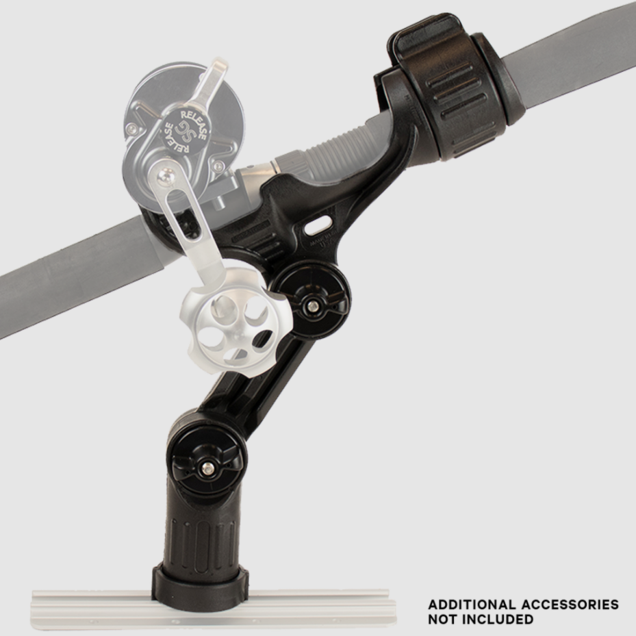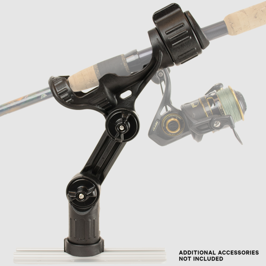 - In adjustment mode, the mount can be rotated in any direction, but cannot be removed, ensuring the rod holder is completely secure while making adjustments, even if a fish hits. Let go of the lever and you are back in locked mode.