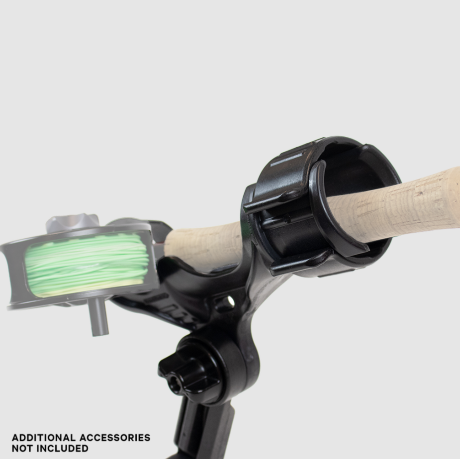 The slogan for our new Omega series rod holders is “The last rod holder you’ll ever need” and that’s exactly what we have developed. This is a truly universal solution that works flawlessly with spinning, casting, larger conventional reels, and yes – even fly rods of all sizes. A 360 degree rotating collar offers the ability to quickly secure the rod by capturing the reel, and allows spinning reels to be stowed in the natural downward position, not hung off the side. Multiple modes allow anglers to easily stage rods for quick access or lock them in for maximum security.