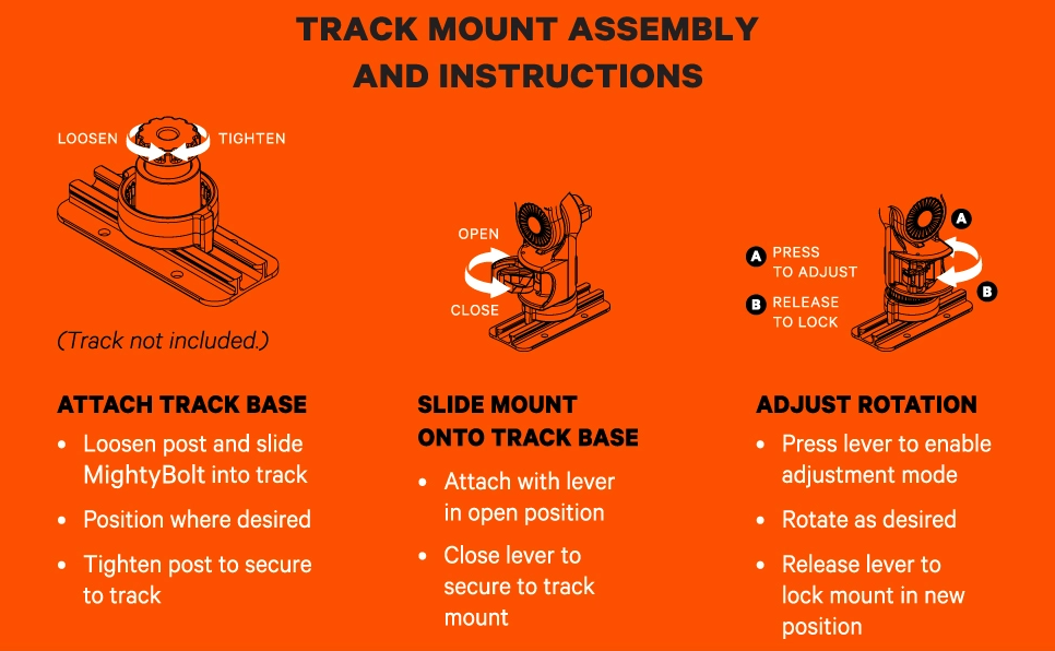 - To go to removal mode, flip the lever out, and the system easily slides off of the track mount.