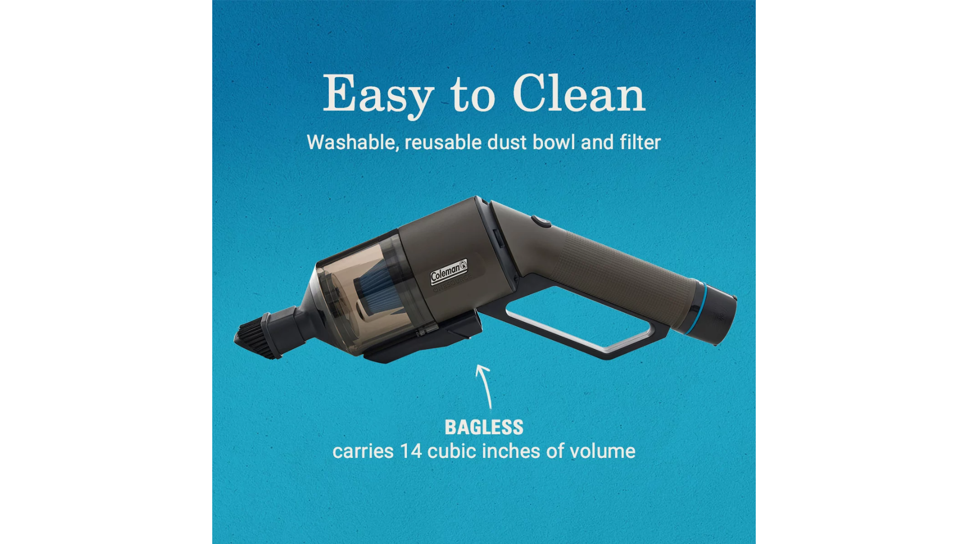 - BAGLESS: Washable, reusable dust bowl and filter for easy cleaning; carries 14 cubic inches of volume