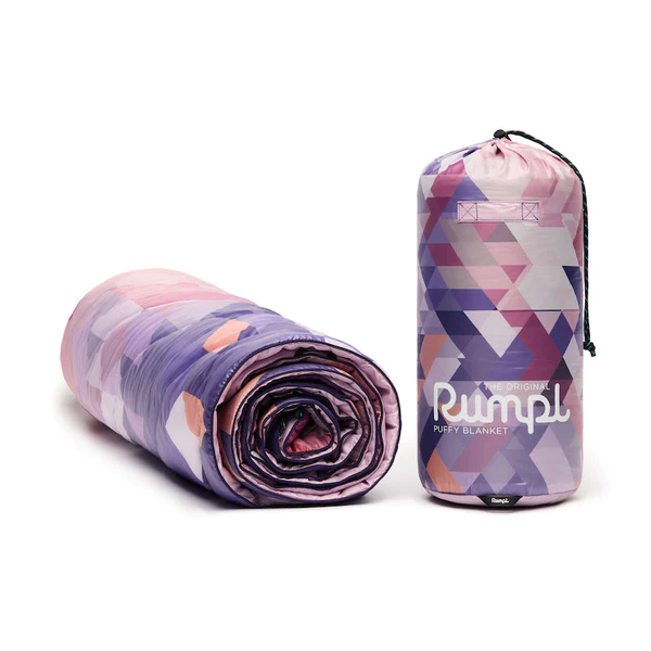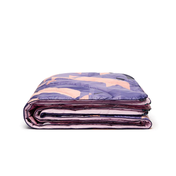 We took our #1 selling Geo print and mixed it with red clay from Sedona, dirt from Red Rocks, and dust from Bryce Canyon to create the Original Puffy Blanket Geo Rose - a print inspired by natural reds and purples around the world.