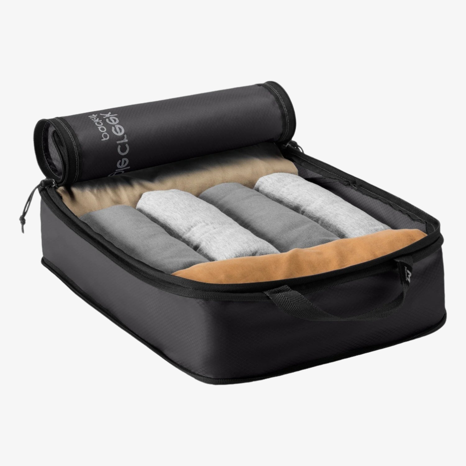 Reduce the packed size of rolled or folded clothing with the lightweight Pack-It® Isolate Compression Cube Set. Made of 100% ocean-recycled fabrics, these compression packing cubes free up space in luggage so you can pack more while staying organized.