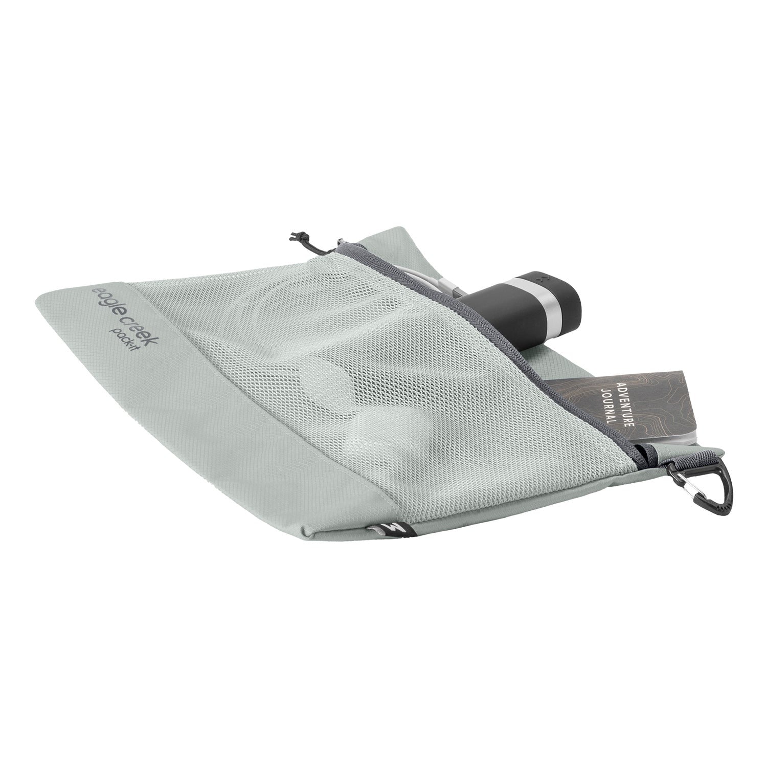 Corral charging cords, books, and other hard-to-herd accessories into the structured Pack-It® Reveal Sack M so they stay easily located—no matter how disorganized your itinerary. The triangular clip attaches securely to the insides of larger bags, and the pouch's fabrics are 100% recycled.