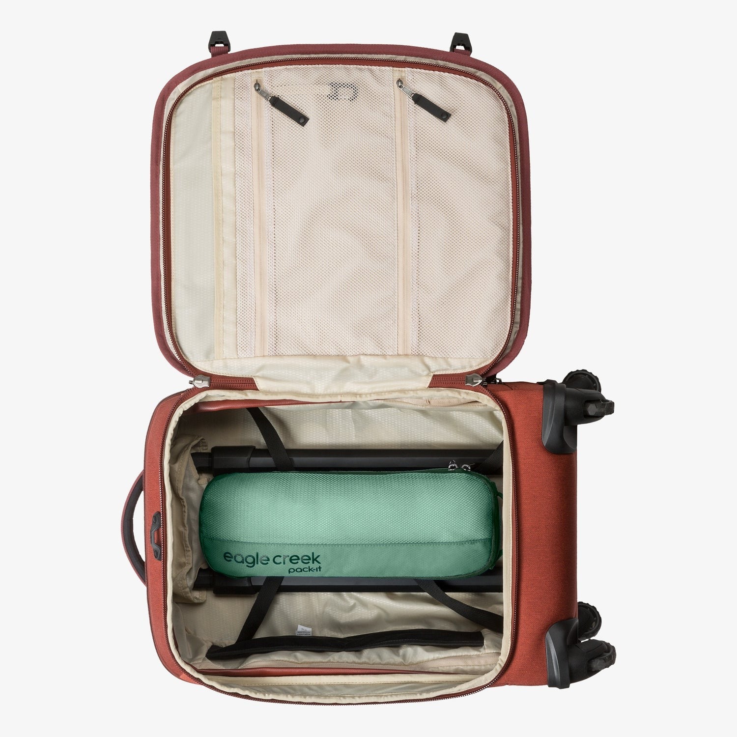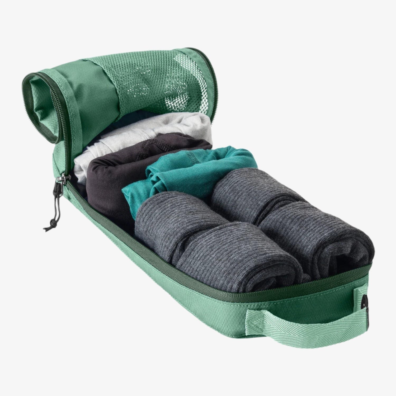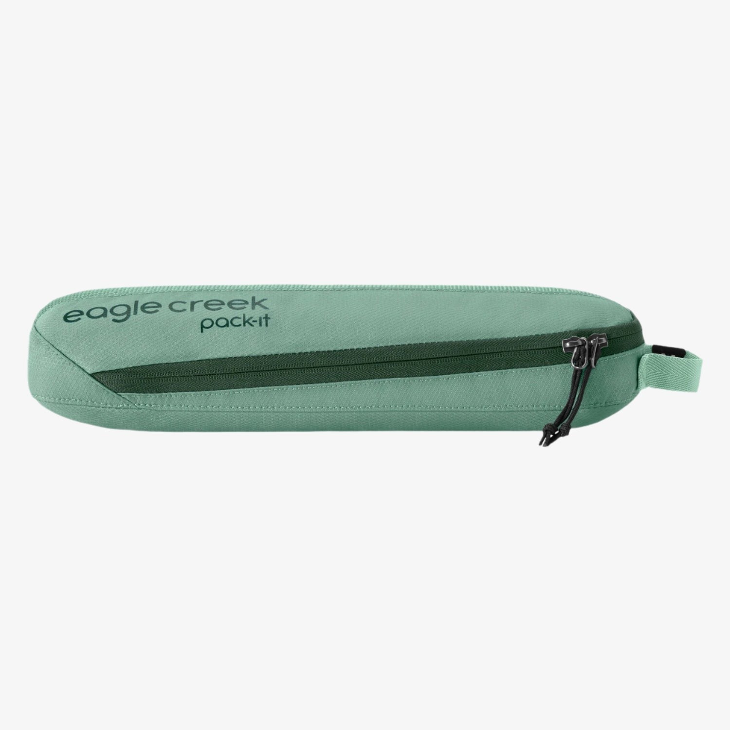 Maximize every inch of luggage space with the clever Pack-It® Reveal Slim Cube M that's designed to fit between the handle tubes inside rolling bags. Its angled opening secures underwear, socks, and other small items in place during packing, and its structured, 100% recycled fabrics are water-resistant to protect contents in transit.