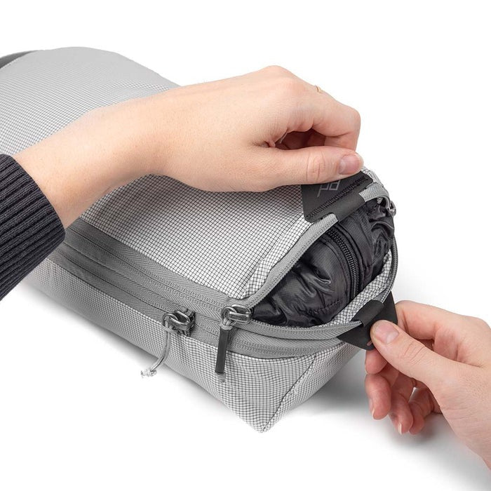 Compressible, easy to access, and instantly dividable, Peak Design Packing Cubes are the most capable, durable, and sustainably-built packing cubes on the planet. No wonder they're one of our best-selling and highest-rated products of all time. A unique tear-away UltraZip™ lets you access contents quickly, unlike standard packing cubes with cumbersome zipper paths. The UltraZip™ can withstand decades of use thanks to it's proprietary abrasion-resistant thread. An internal divider lets you separate clean and dirty clothes, and allows each compartment to expand/contract based on its contents. And, an expansion/compression zip provides additional space, or the ability to compress contents once packed. Made from our 100% recycled weatherproof Versa Heal™ 70D ripstop, these cubes can actually self-heal small punctures and abrasions with the rub of a finger. And, like all Peak Design Travel Bags, our Packing Cubes are Fair Trade Certified.