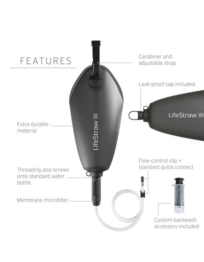 - Includes: LifeStraw Peak Series 3L gravity bag with hose and standard quick connector, carabiner, leak-proof cap for water storage, easy carry strap, backwash accessory, user manual?