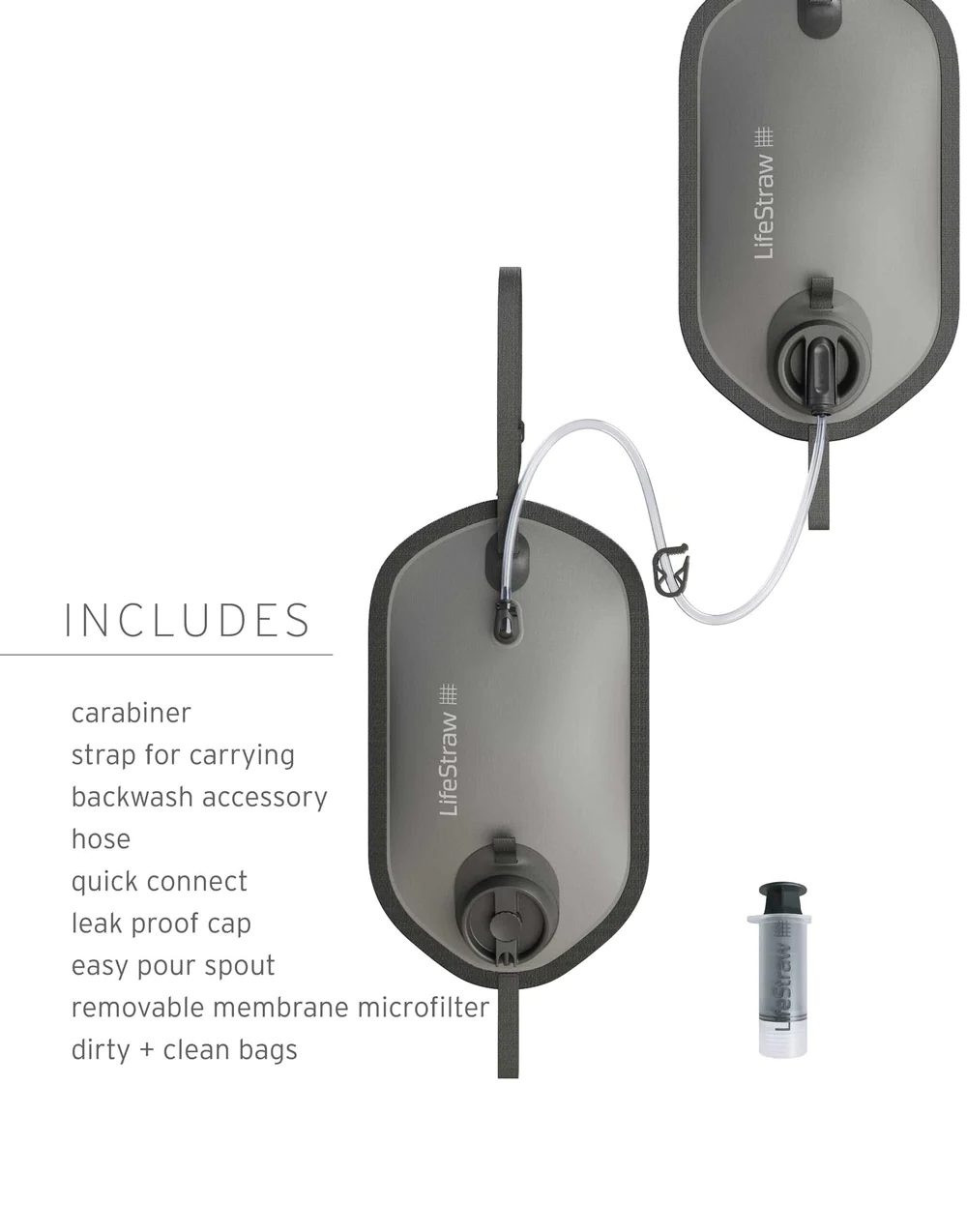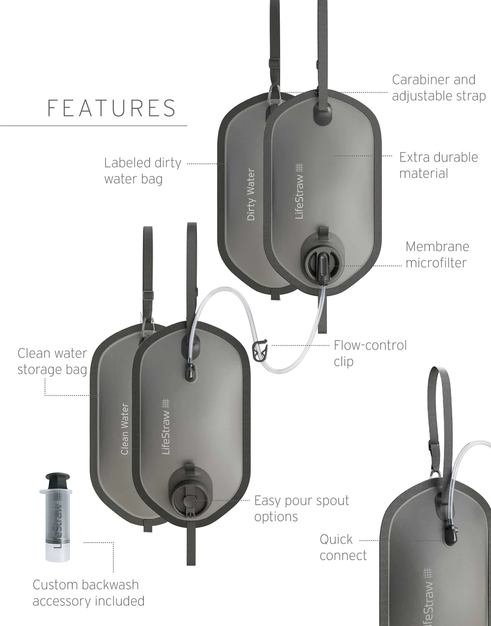 - Highly Versatile. Use as a gravity water filter system, storage system, and straw filter for on the go