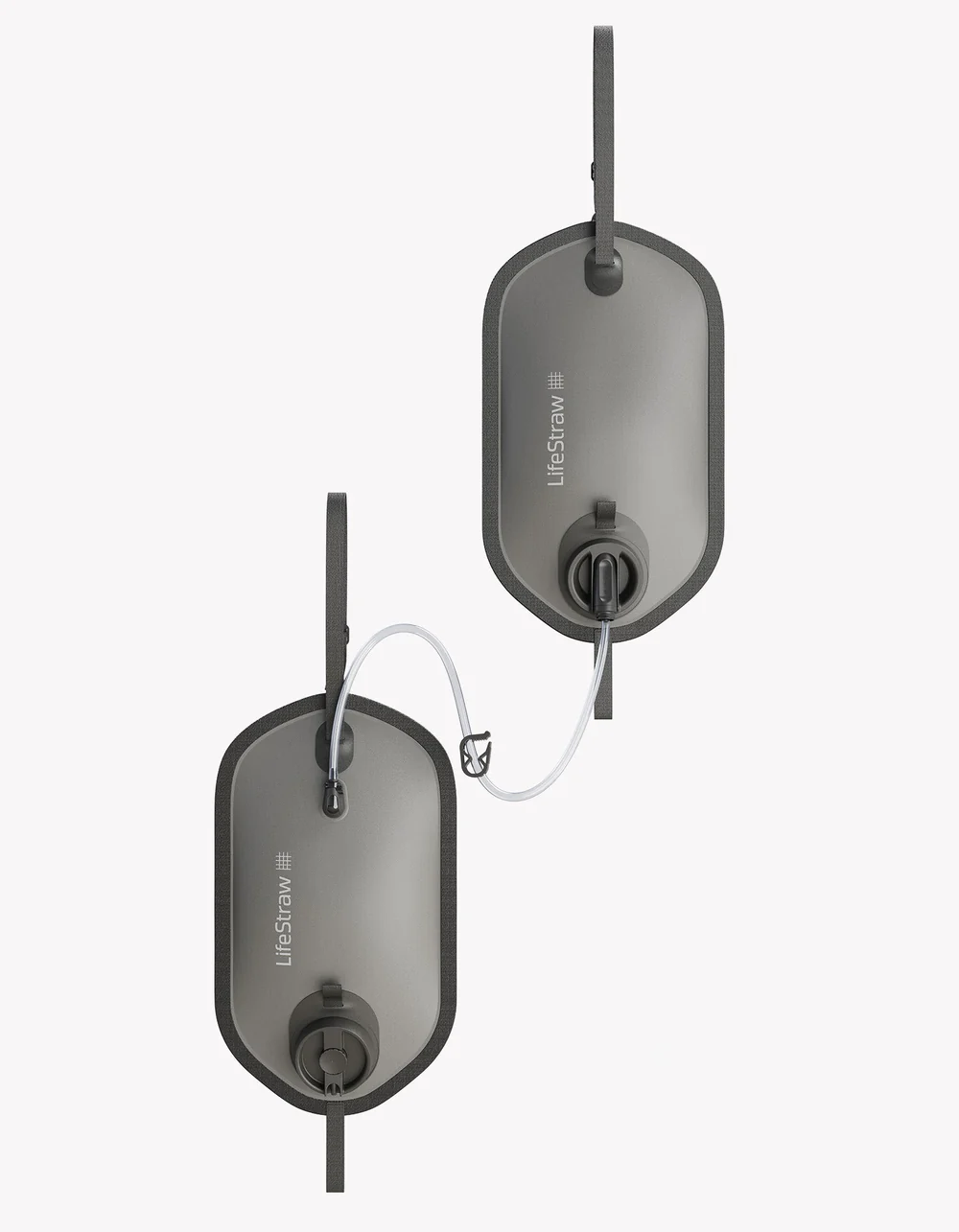 Both 8L gravity and storage bags are fully leak-proof systems allowing for mobility, and the safe-water storage bag has a custom easy-pour screw-spout for fast flow and a hose attachment for added functionality and versatility. You can even remove the filter from the gravity bag and use as a straw on the go, connect to a water bottle, or use the included plug cap to stop flow and use as a second storage system. Made of high-performance materials for long term durability, you won’t have to worry about punctures or rips during your travels. This gravity water filter system with safe storage has multiple carrying options, while boasting a simple but enhanced filtration system designed to prevent clogging from sand and silt. It’s the only gravity water filter system with added safe storage you’ll need for you and the whole crew for as long as you’re on your adventure.