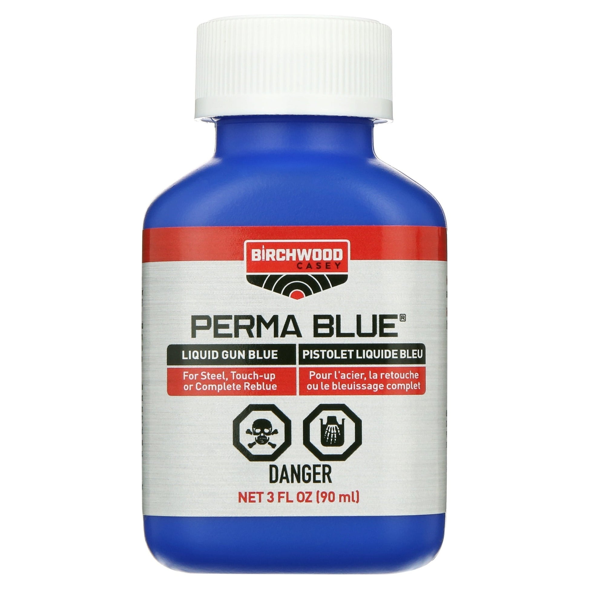 Birchwood Casey offers you the best ways to touch up scratches and worn spots or even completely reblue most guns. It will give a non-streaky, even blue-black finish to steel (except stainless). Perma Blue Liquid Gun Blue provides great blueing to metal that has already been thoroughly cleaned and is free of rust.