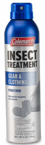 Use to treat clothing, shoes, nets, gear, and tents. Repels and kills mosquitoes, ticks, and mites. Lasts up to two weeks through several washes. Rust-resistant aluminum can features a twist-locking cap and sprays at any angle. One 6 oz. can treats one complete outfit (shirt, trousers, and socks).