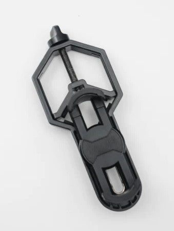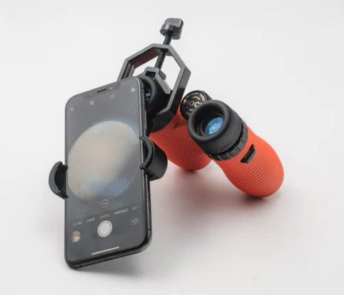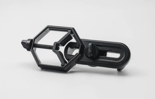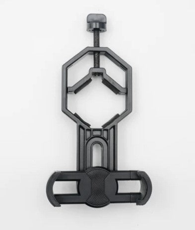 Aligns the phone lens with the binocular lens for photos and for videos. Reinforced cast aluminum frame keeps a tight grip on the binoculars, while spring loaded phone clamp, also of aluminum, holds the smartphone tight. Eyecup width between 24-46mm, which covers the spectrum of optics. Phone widths between 62-104mm will fit (iPhone 5 sans case is too narrow). Folds down to a small size that easily fits in pocket.
