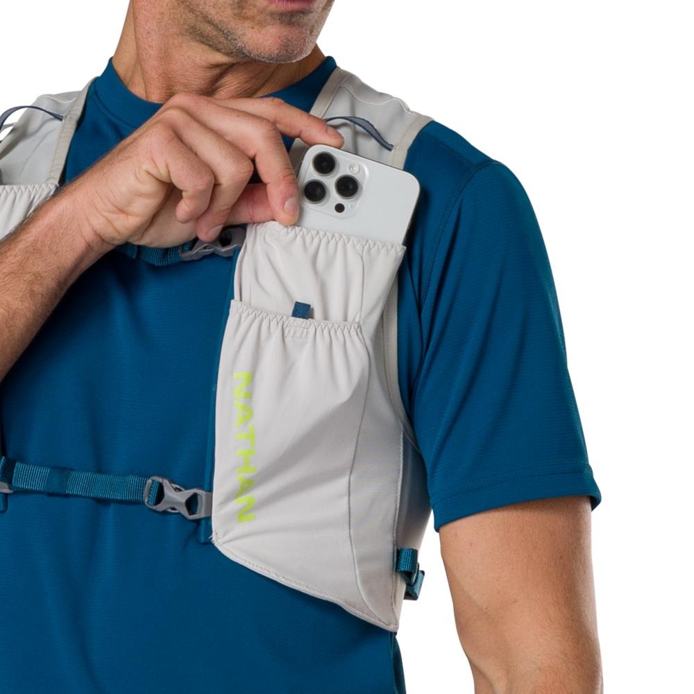- Vest comes with 14oz Nathan x Hydrapak Soft Flask with tapered bottom