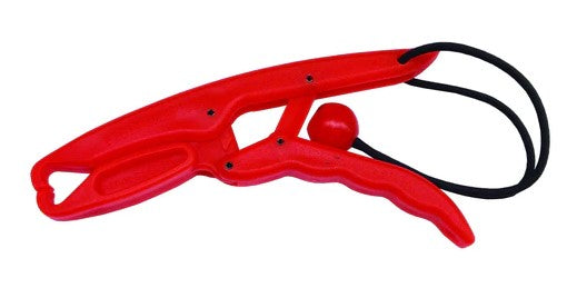 The Fish Grip is a new fish landing device developed by an expert angler and used by many fishing guides. Features a locking mechanism, unique jaw design for gripping the mouth of fish, a slot to attach a scale for weighing, and durable elastic lanyard. Made of highly visible (orange or glow) plastic and stainless steel. Made in the USA.