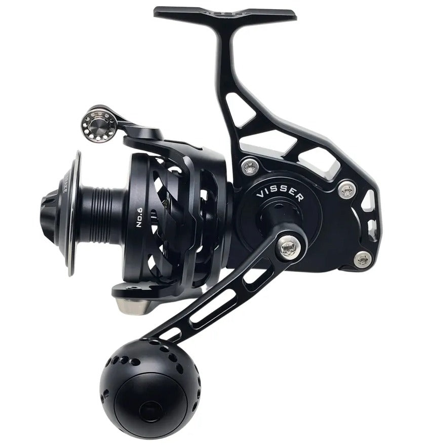 The Visser Reels PM-6B PierMaster Spinning Reel is specifically engineered to excel in pier and surf fishing conditions. Constructed with a waterproof modular one-cover body that is vacuum tested, the PierMaster Reel is built for durability and ease of use. The lightweight and robust design matches today’s lightweight rods, offering seamless integration and superior performance. Each part of the reel is machined from aircraft-grade aluminum, ensuring strength and longevity. The stainless alloy main drive gear is precision digital machined, while the naval brass pinion provides exceptional durability and corrosion resistance. The reel features 14 precision ARB stainless bearings and one heavy stainless clutch for smooth and reliable operation.