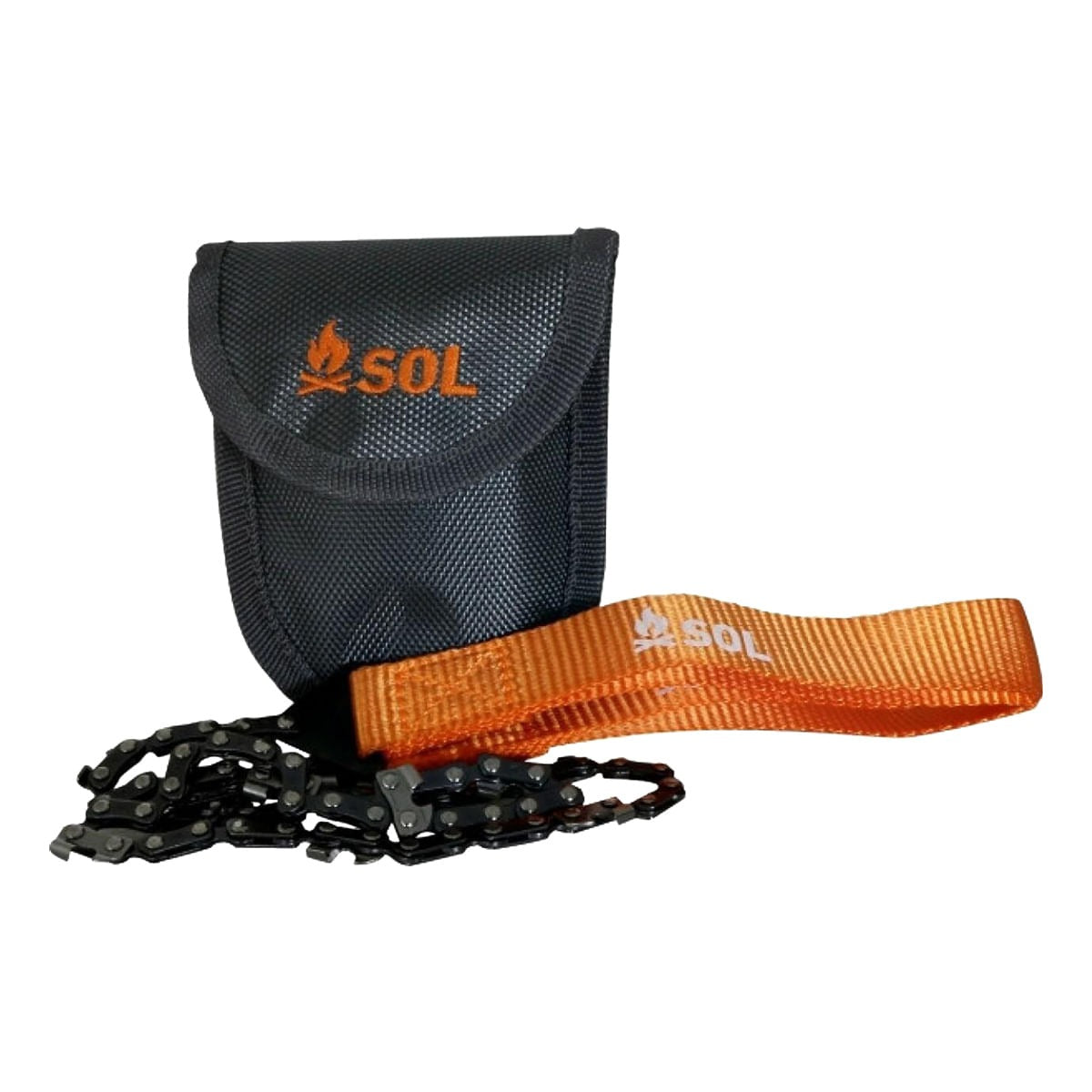 The SOL Pocket Chain Saw features a 26-inch chain, and 11 cutting-teeth are made with durable 65 carbon steel. The chain saw can be stores in a ruggedly durable pouch on your belt or in your pack when the job is done. Easily grab the easy-grip handles and wrap the teeth around a log and branch then within a few strokes the job is done.