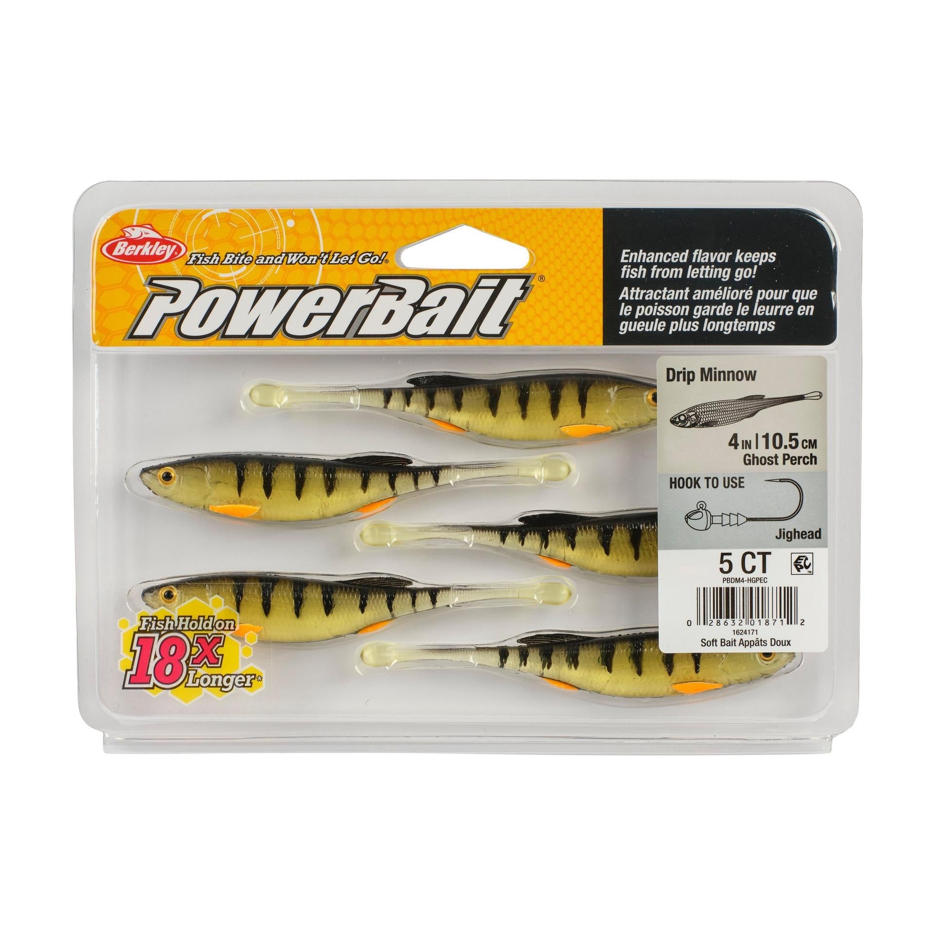 The Berkley 4" PowerBait Drip Minnow is designed to exploit finesse techniques through ultra-realistic design, action and color. The internal core provides added realism especially in translucent colors with unmatched stomach detail. Drip Minnow features a "drip" shaped tail for subtle action when twitching or shaking. The head and body perfectly mimic shiners and baitfish providing enough body for a wide range of finesse techniques.