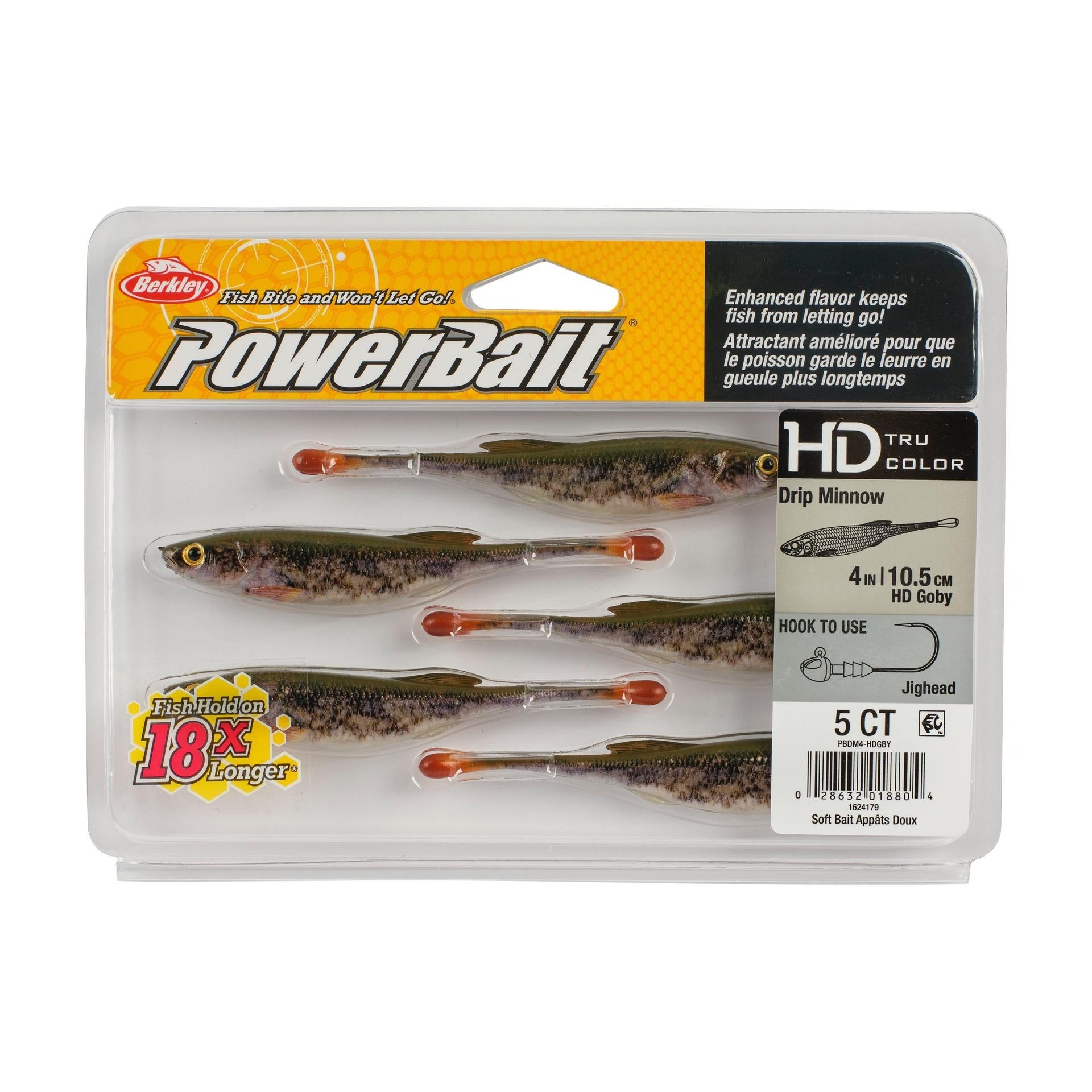 The Berkley 4" PowerBait Drip Minnow is designed to exploit finesse techniques through ultra-realistic design, action and color. The internal core provides added realism especially in translucent colors with unmatched stomach detail. Drip Minnow features a "drip" shaped tail for subtle action when twitching or shaking. The head and body perfectly mimic shiners and baitfish providing enough body for a wide range of finesse techniques.