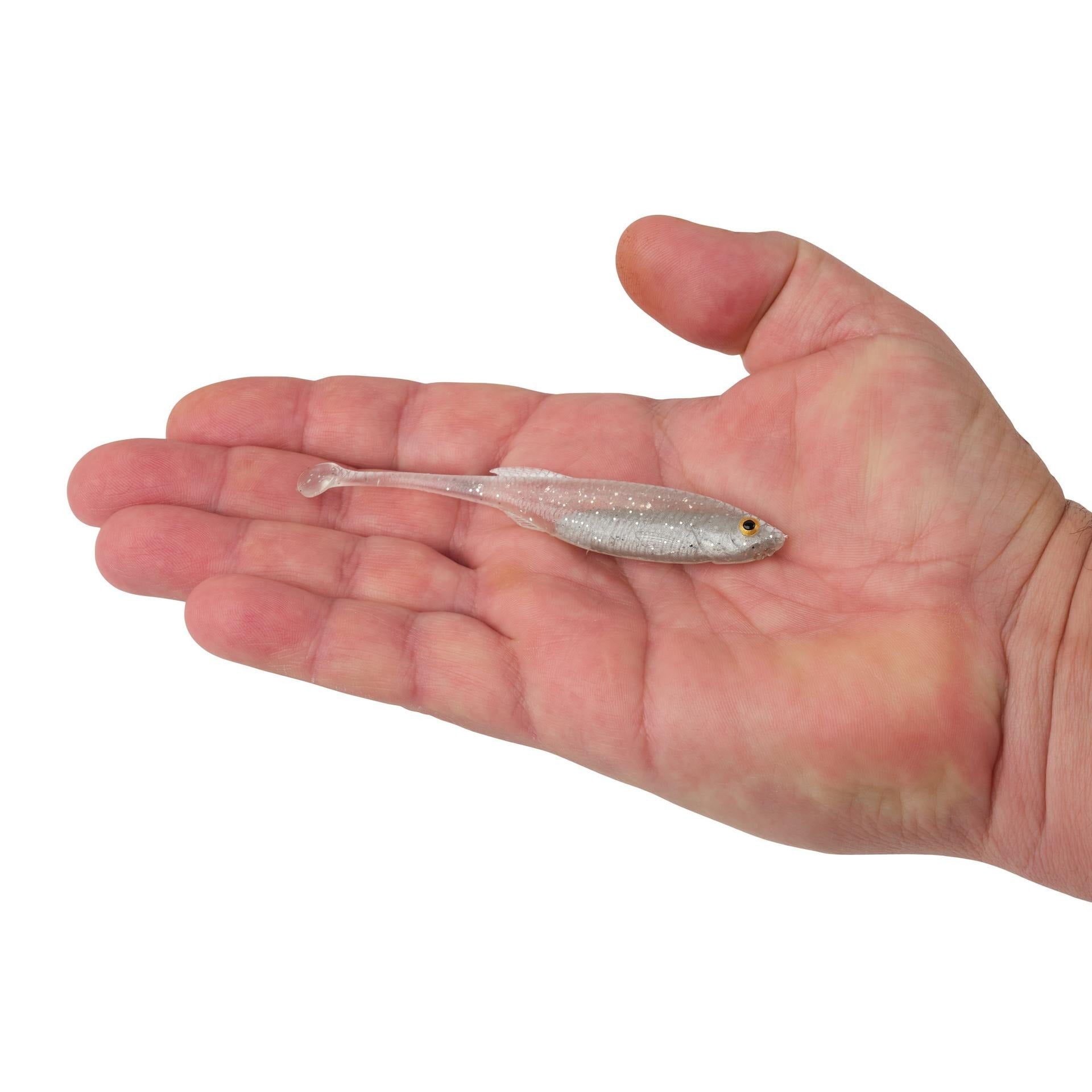The Berkley 4" PowerBait Drip Swimmer is designed to exploit finesse techniques through ultra-realistic design, action and color. The internal core provides added realism especially in translucent colors with unmatched stomach detail. Drip Swimmer features a micro-boot tail for tight actions to provoke pressured fish. The head and body perfectly mimic shiners and baitfish providing enough body for a wide range of finesse techniques.