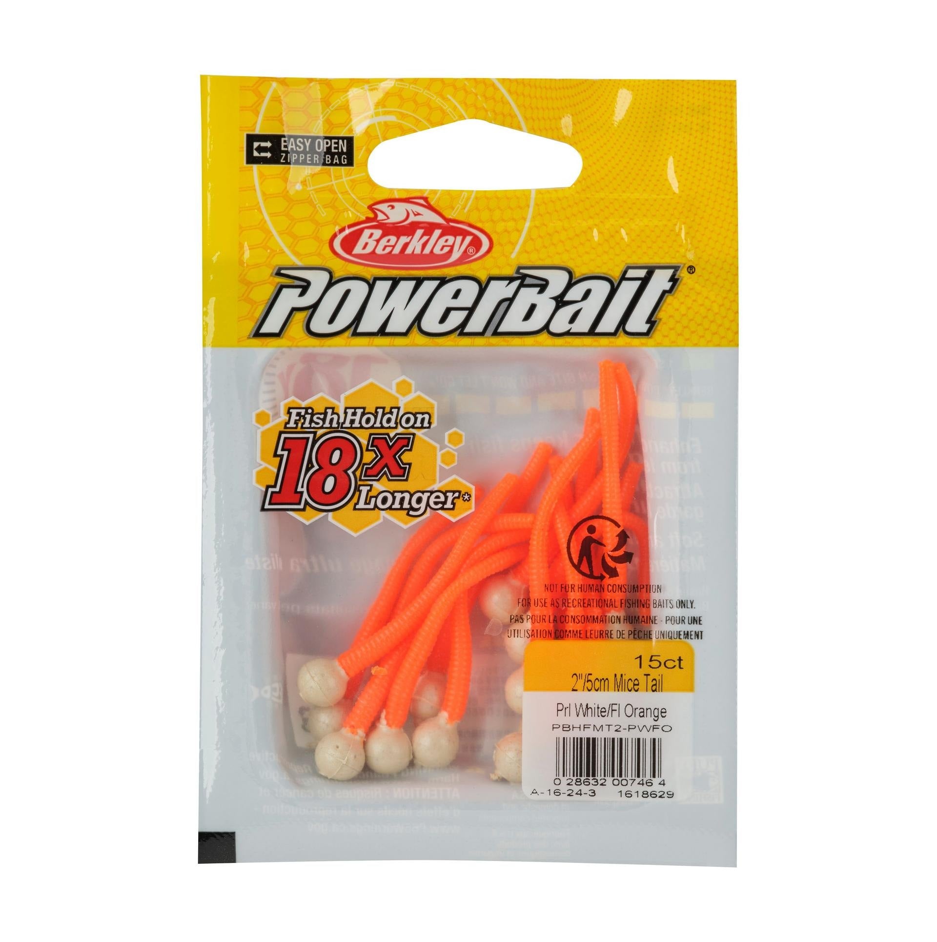 The Berkley 2" PowerBait Floating Mice Tails feature a combination of salmon egg and trout worm to create one incredible bait. The unique shape replicates "Power Mouse" rig for trout. The different head and tail colors provide maximum contrast in the water column while the lively action gives a lifelike presentation. Berkley PowerBait makes novice anglers good, and good anglers great! Berkley scientists have spent over 30 years perfecting an irresistible scent and flavor - the exclusive PowerBait formula. Fish love PowerBait so much - it entices the most wary fish and gets them to hold on 18 times longer, which gives you the time and confidence to Feel More Bites, Set More Hooks, and Catch More Fish!