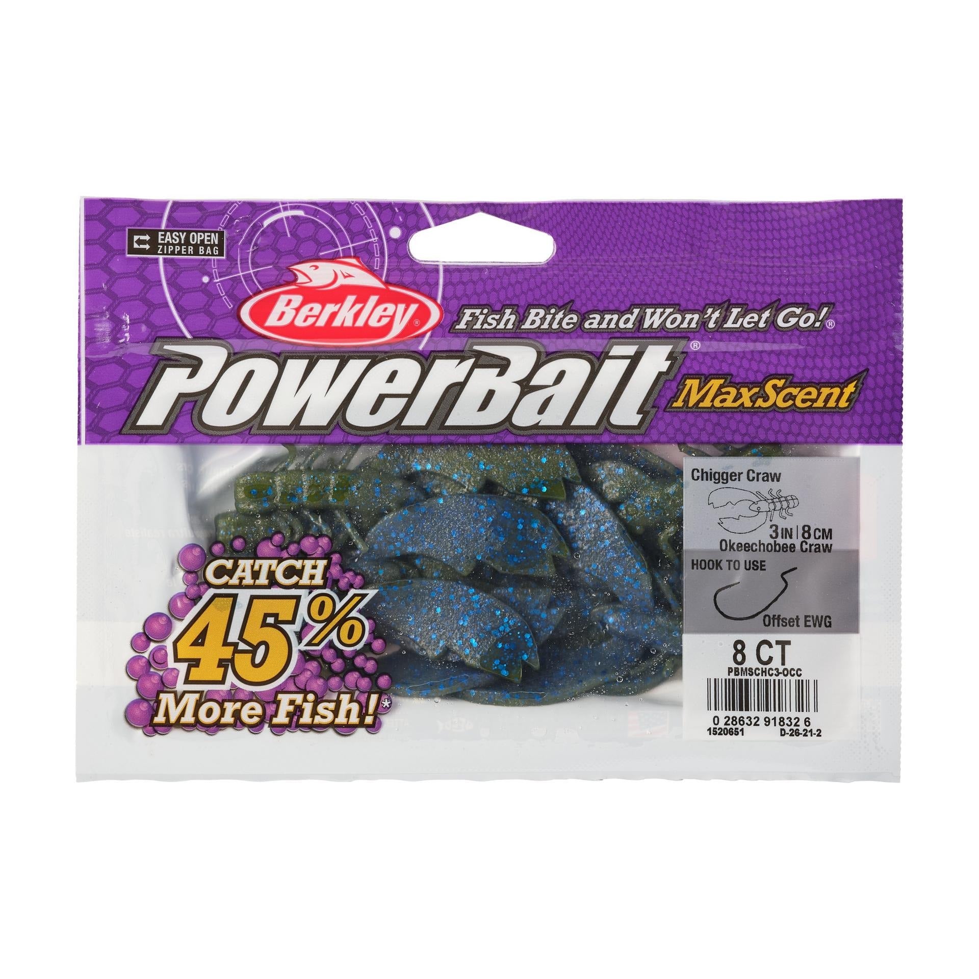 The Berkley 3" PowerBait MaxScent Chigger Craw releases a super-charged scent field attracting fish in a way never before seen. This all-new material is perfect for finesse presentations with ultra-realistic texture and natural matte colors to fool the hardest-to-catch fish. The soft, yet durable material provides for life-like action and easier hook-ups producing multiple fish on each bait.