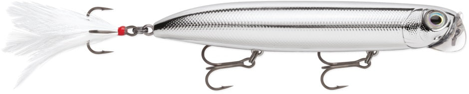 The unique mouth design of the Rapala 5" Precision Xtreme PXR Jowler 127 creates maximum surface disturbance, while allowing the bait to have hard-cutting splash-n'-walk action at any speed. Dual frequency knocker draws the fish's attention and provides accurate, ultra-long casts. Armed with VMC® RedLine Series® treble hooks with dressed rear flash feather tail to make this a complete fish-catching surface bait.