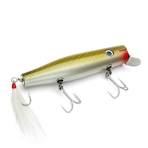 The outstanding ability of the Gibbs Lures 2.25 oz. ProSeries Danny Surface Swimmer to attract big bass is due to the unique swimming action it creates. Unlike minnow type plugs that swim from the nose, the Danny pivots from a fulcrum in the center of its body.