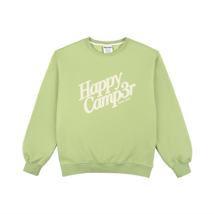 - Matcha Green fleece with thick Cream puff print "Happy Camp3r" on the front and "Happy Camp3r" on the back