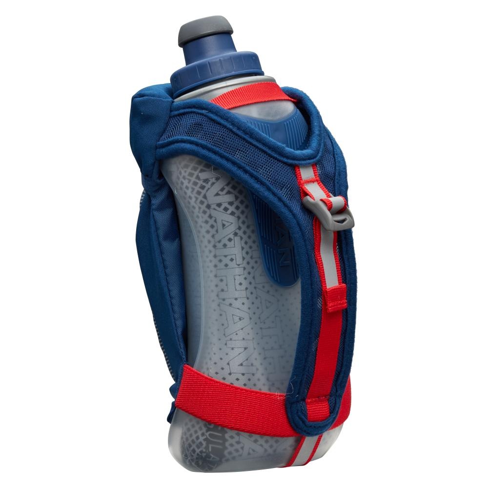 The updated design includes a more secure hand strap system, that utilizes Nathan's grip-free technology, and a softer bottle making it easier to squeeze and control the flow of water. Plus, a TPU grip keeps the bottle in place despite hand sweat.