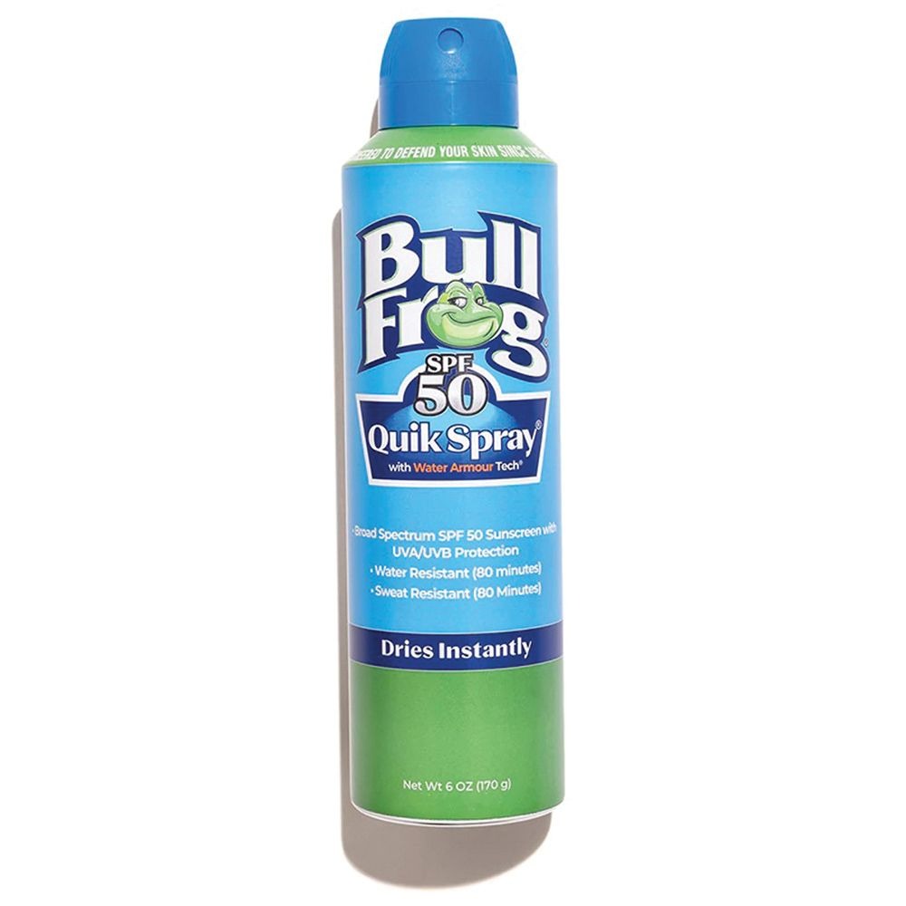 Bullfrog Quik Spray is a continuous spray sunscreen with the classic look that you know and love. Since 1985, Bullfrog has been a must have for those who love the outdoors. Engineered to perform and protect in the most extreme conditions, this product is perfect for the whole family and all sports.