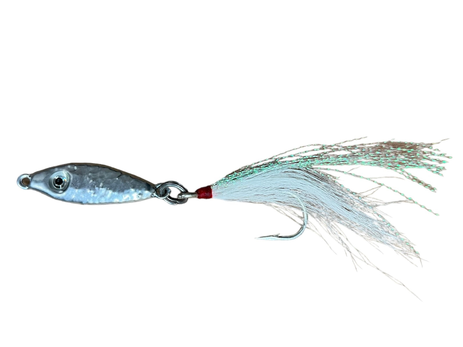3/4 oz, 1 oz, and 1.5 oz lures come with bucktails and a hook