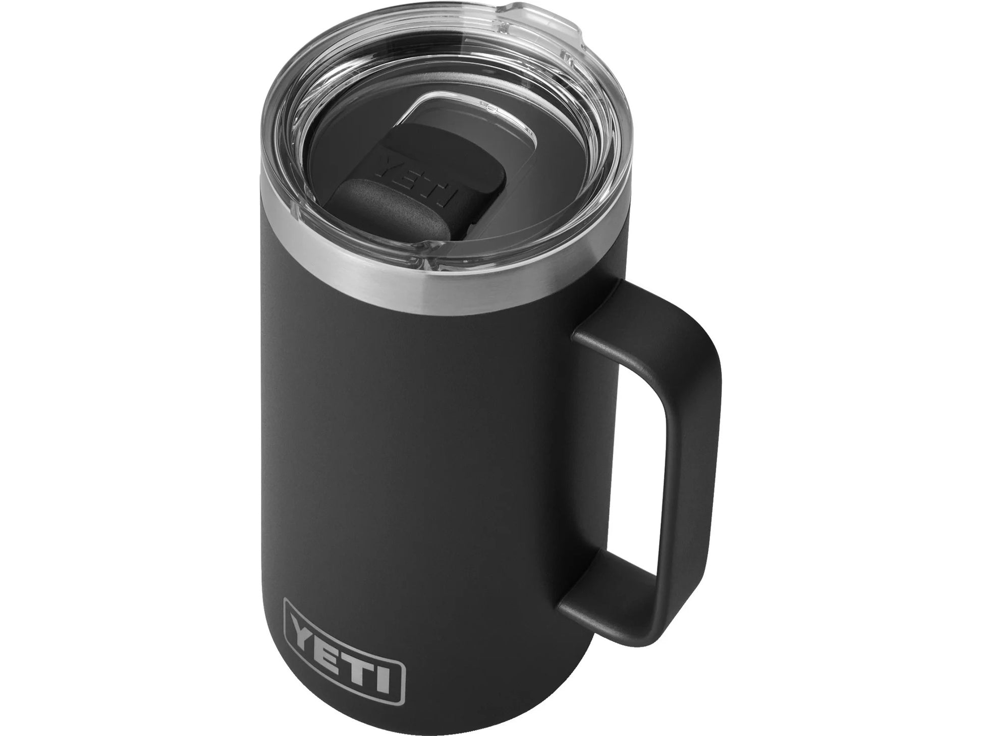 The YETI Rambler 24oz Mug... it's tall, insulated, and with its sizable handle, it's the beer lover's new drinking buddy. Unlike beer glasses, this mighty mug is safe for camp. Plus, this stainless-steel beer mug is topped with our fan favorite MagSlider™ Lid, and the entire mug is dishwasher safe, making clean-up jobs extra easy at base camp. Bottoms up, y'all.