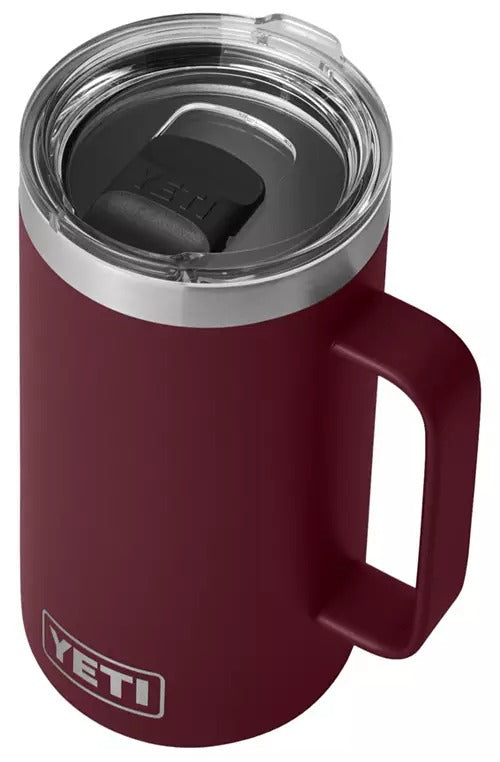 The YETI Rambler 24oz Mug... it's tall, insulated, and with its sizable handle, it's the beer lover's new drinking buddy. Unlike beer glasses, this mighty mug is safe for camp. Plus, this stainless-steel beer mug is topped with our fan favorite MagSlider™ Lid, and the entire mug is dishwasher safe, making clean-up jobs extra easy at base camp. Bottoms up, y'all.