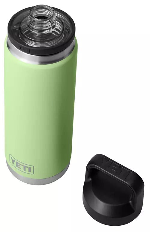 The YETI Rambler 26 oz. Bottle is the goldilocks of our bottle line, just the right amount for almost any day and still fits in your backpack. With a quick twist, the TripleHaul™ handle comes off, exposing our shatter-resistant, dishwasher safe spout that allows for controlled gulps on the go. When it's time for a wash or refill, remove the entire cap to expose the bottle's wide mouth. Available in stainless and DuraCoat™ colors that won't peel or crack, is dishwasher safe, and the double-wall vacuum insulation means your drink stays cold no matter where the journey takes you.