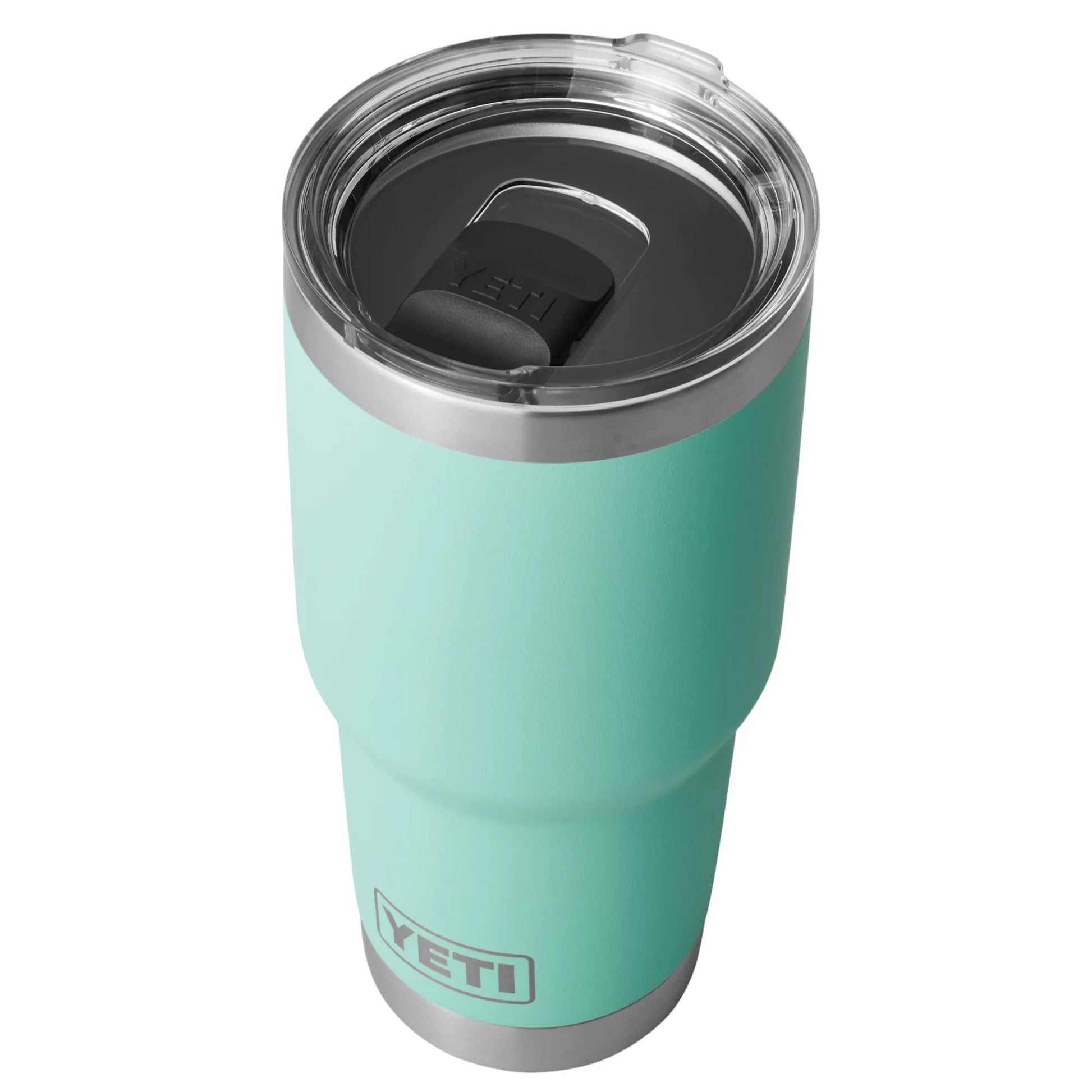 The YETI Rambler® 30 oz. is the tumbler that gets you through the day. Your morning brew will stay hot or your iced coffee will stay cold - so take your time. Kitchen-grade stainless steel with double-wall vacuum insulation work. together protect your drink at all costs. Like the entire Rambler® Drinkware Family, the 30 oz. Tumbler and MagSlider™ Lid are dishwasher-safe for easy cleaning. While the magnet on the included MagSlider™ Lid adds an additional barrier of protection for keeping drinks contained and preventing heat or cold from escaping, this magnet slider is not leakproof and will not prevent spills.