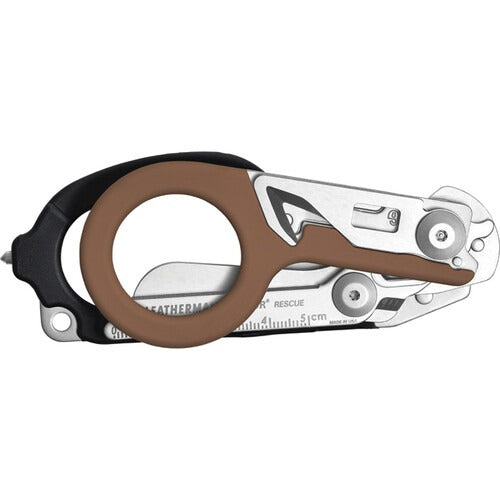 The Leatherman Raptor Rescue Shears are a professional-grade multi-tool designed for emergency medical situations. Developed with input from first responders, these foldable shears combine the functionality needed by medical professionals with the portability and durability expected from Leatherman. This model features a tan and black color scheme and includes a MOLLE-compatible utility sheath for secure, convenient carry in the field. Be ready for any emergency with the reliable, field-tested performance of the Leatherman Raptor Rescue Shears.