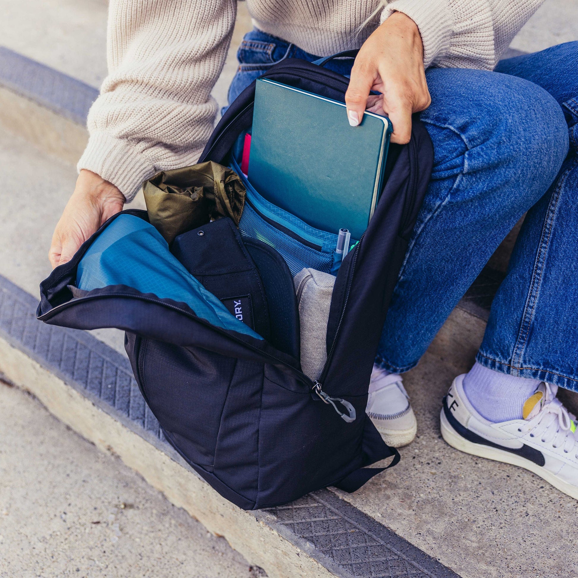 - All fabrics made from recycled content, resulting in 57% reduction in the carbon footprint compared to a conventional nylon pack