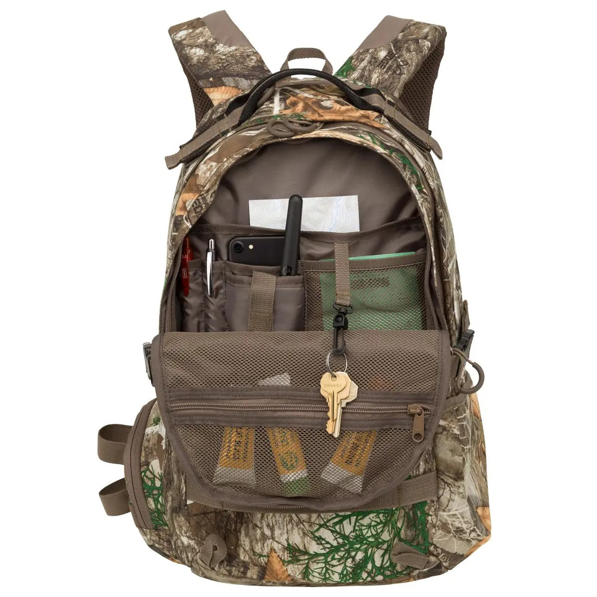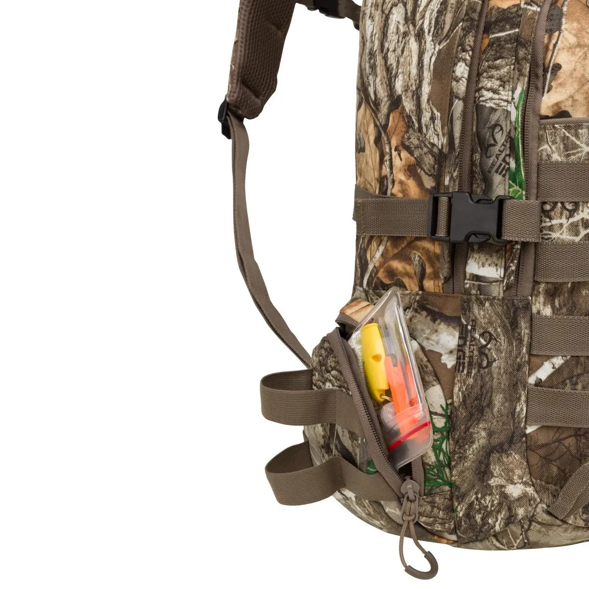 Designed for hunting, camping, and backpacking adventures, the Fieldline Ridge Tracker Pack offers 1819 cubic inches (29.5 liters) of storage space in durable Realtree Edge camouflage. This daypack provides comprehensive organization and hydration compatibility to support your extended outdoor pursuits, whether for a day hike or travel.
