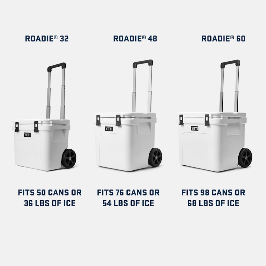 The YETI Roadie® 32 Wheeled Cooler is maneuverable, durable, and small-vehicle trunk compatible making it ready to navigate tailgate crowds, long road trips, and weekend tournaments. This wheeled cooler has the same cold-holding power and durability you'd expect from a Tundra Cooler with added mobility. It's also going to last just as long thanks to its RockSolid™ Strength body construction from the durable handle to its rugged wheels, this thing is virtually indestructible. This Roadie® 32 Wheeled Cooler comes with one dry goods basket.
